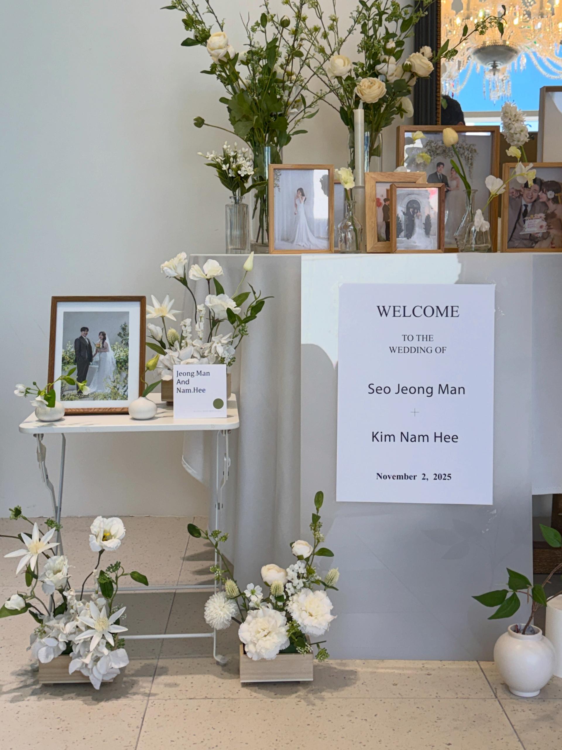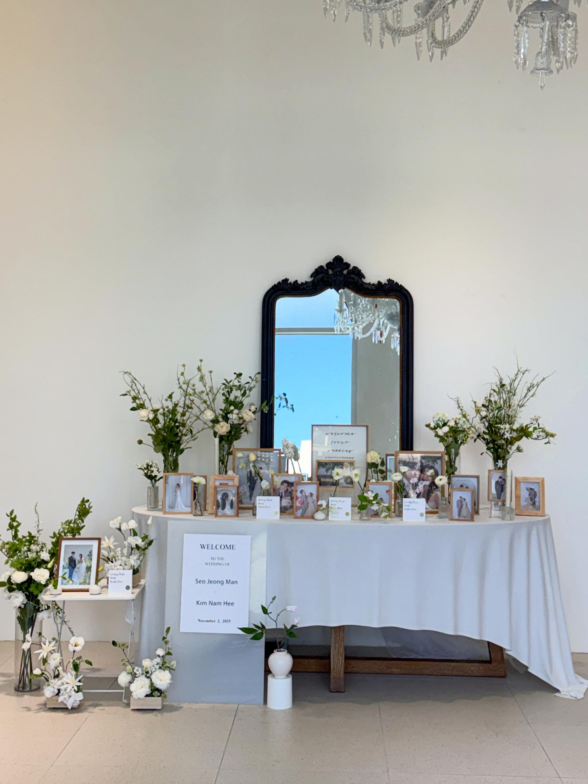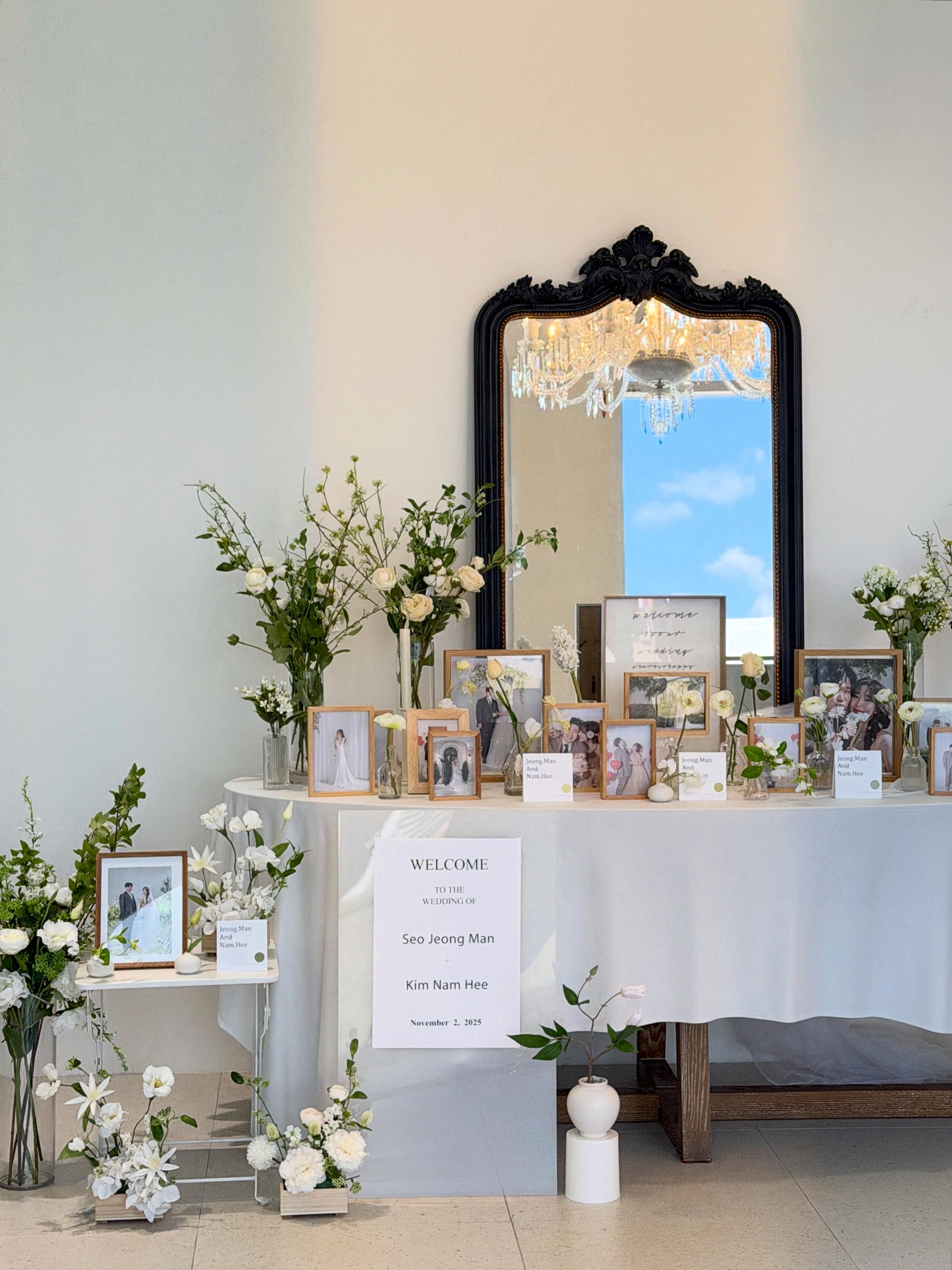 포토테이블 옆 센터피스는 공간에 따라 제외될수있습니다.
